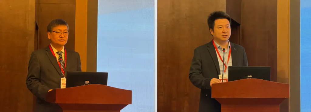 中国农业机械工业协会副会长李有吉(左)和中国农业机械流通协会副会长游凌(右)出席对接会并致辞